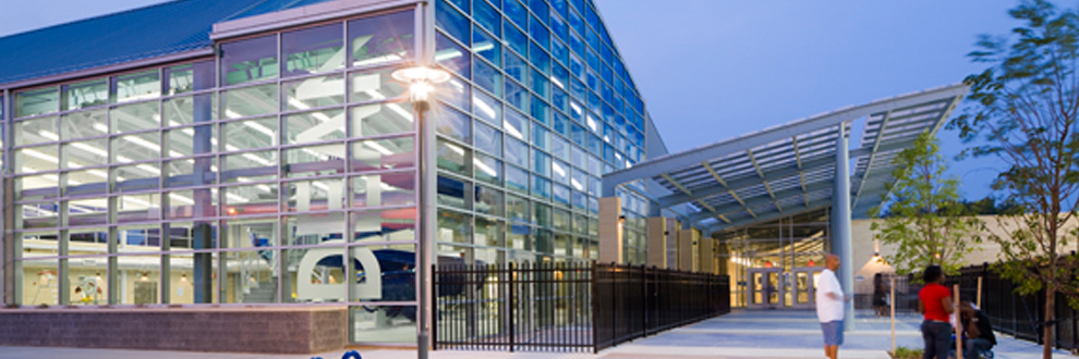 The 63,000 square foot Deanwood Community Center and Library, which delivered in 2010, is an innovative collaboration project between the D. C. Department of Parks and Recreation and D. C. Public Library to provide residents a variety of services in restricted public space. The new facility is designed and constructed as a Green building to meet LEED Silver certification. The project includes an indoor leisure swimming pool, locker rooms, gymnasium, game room, 10,000 square foot library, childcare facilities, dedicated senior services area, kitchen, and community and multipurpose rooms. In addition, the new library and community center share space for a computer lab, senior rooms, tutoring rooms, and community meeting rooms. POUNDS managed the HVAC and plumbing services in support of this $33 million project. Please click the link below to read a more detailed case study on this project. |